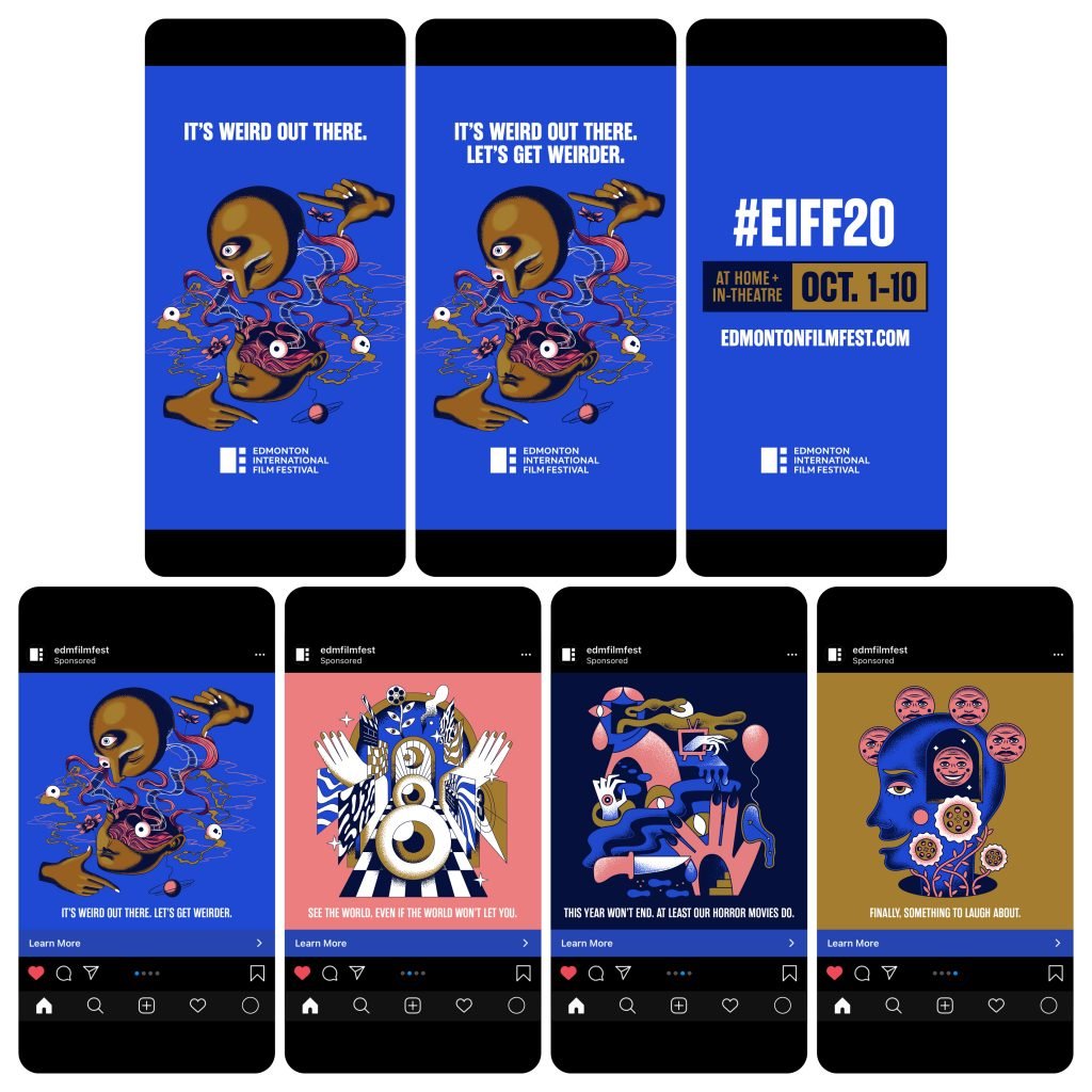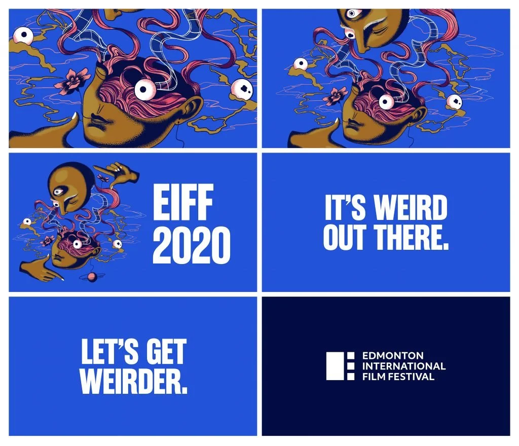 We knew the festival’s promo campaign couldn’t ignore the gravity of the moment. We also knew people were overwhelmed by ‘we’re in this together’ bullshit. The work had to be topical, yet totally unique. Recognizing EIFF as a purveyor of eclectic films not found anywhere else in Edmonton, we presented the absurdity of 2020 as an ideal backdrop for the festival’s one-of-a-kind cinema. I crafted some fittingly existential lines. A crack team of illustrators worked their magic. And the show, as they say, went on.